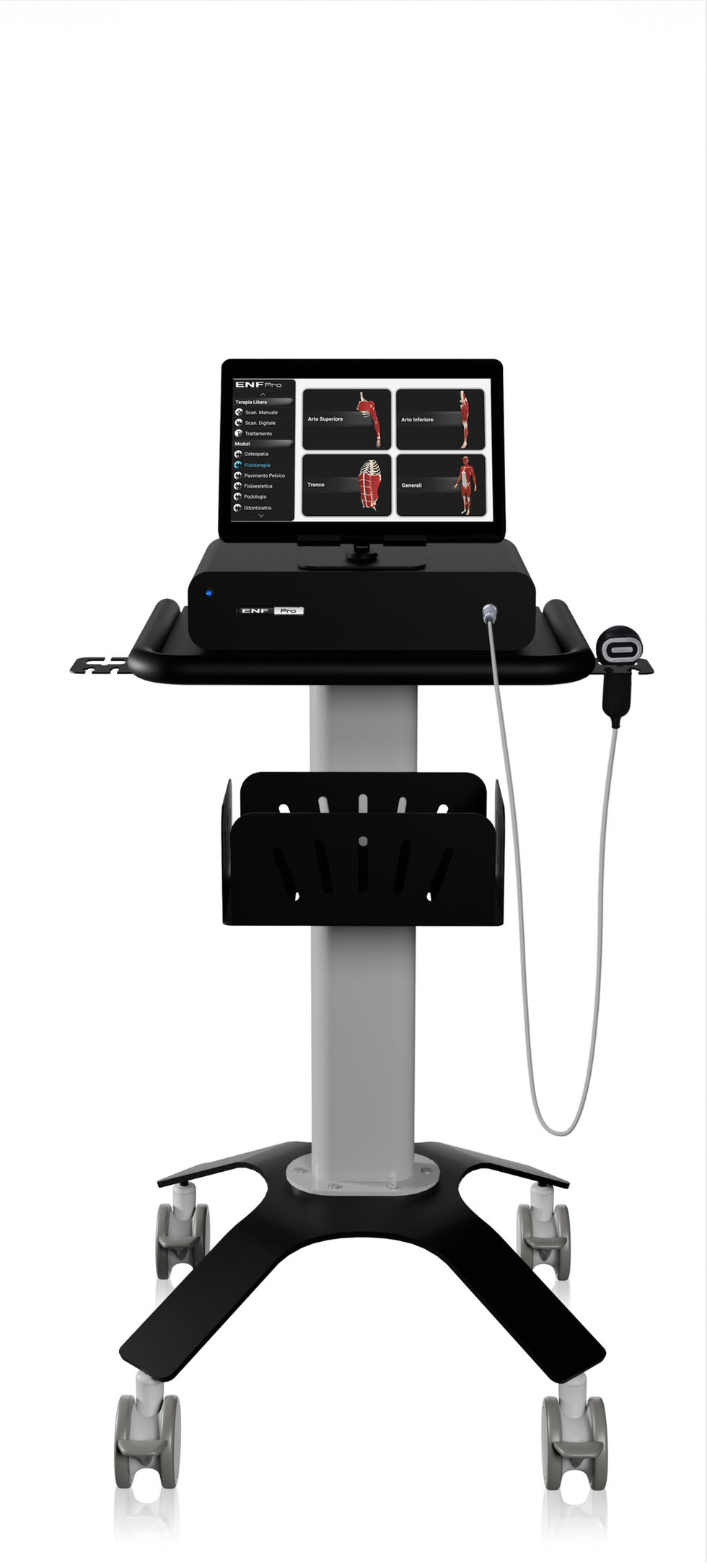 Novi član družine ENF: ENF PRO se lahko uporablja v dveh načinih: Terapija po meri (Custom Therapy), v kateri lahko poiščete točko zdravljenja in nato izberete želeni terapevtski učinek med 15 prednastavljenimi. Protokoli, v katerih lahko brskate po knjižnici patologij izbranega modula in izberete povezan protokol, ki grafično prikazuje, kje izvesti zdravljenje z uporabo sond, ki niso odvisne od operaterja. Moduli: